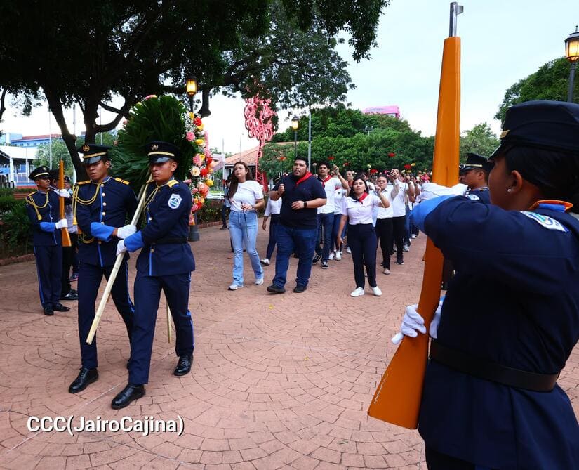 De igual forma, una representación del Ejército de Nicaragua, entre ellos cadetes de la Academia Militar General de División José Dolores Estrada, saludaron el natalicio del Príncipe de las Letras Castellanas.