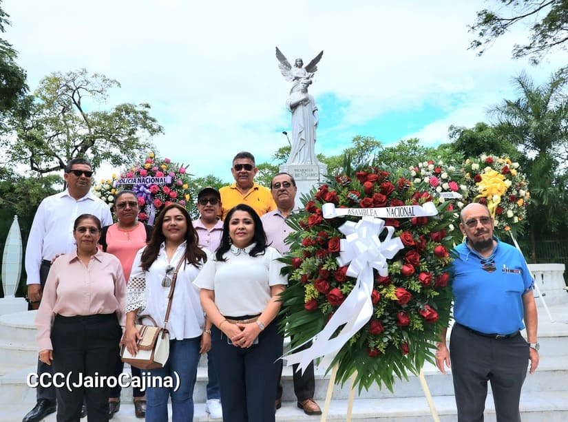 “En nombre de la Asamblea Nacional de Nicaragua y a través de él también rindiendo honores a nuestro pueblo nicaragüense. La Asamblea Nacional ha saludado a nuestro Héroe Nacional de la mejor manera, ya que en esta semana aprobamos en segunda legislatura el preámbulo de nuestra Constitución Política del cual él es parte esencial de ese preámbulo”, refirió la Diputada Arling Alonso.