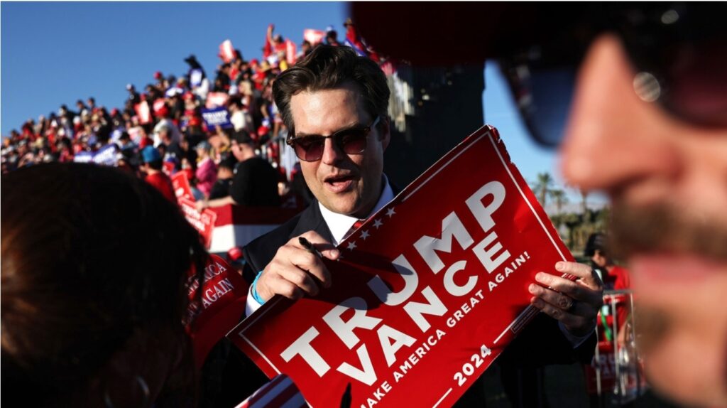 El mandatario electo calificó a Gaetz como un “abogado dotado y tenaz” que se ha distinguido en el Congreso por su empeño en lograr una reforma “desesperadamente necesaria” en el Departamento de Justicia.
