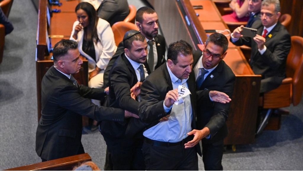 Mientras el presidente estadounidense pronunciaba su discurso, dedicado a sus esfuerzos de poner fin a la guerra entre Hamás e Israel en la Franja de Gaza, los diputados Ayman Odeh y Ofer Cassif levantaron un cartel con la palabra “Genocidio”, tras lo cual fueron escoltados fuera de la sala.