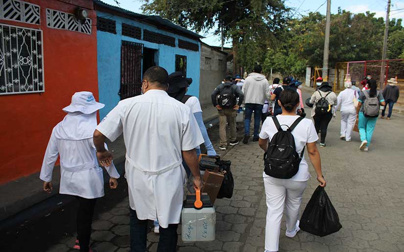 En total se desplegaron 16 equipos de personal médico que visitaron cada una de las viviendas de este sector, la meta del país es garantizar vacunas para cada uno de los nicaragüenses.