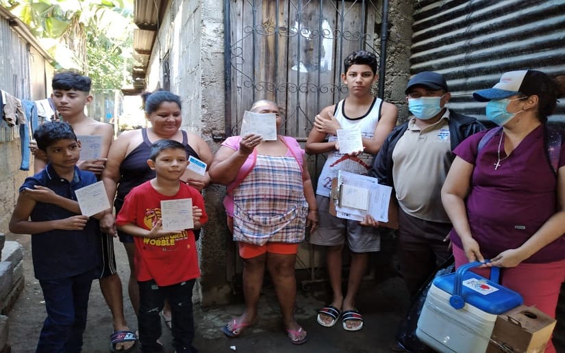 Trabajadores del ministerio de salud visitaron casa a casa a las familias del barrio Montefresco del Distrito VI de Managua como parte de la jornada de vacunación voluntaria contra el Covid-19 que se lleva a cabo en Nicaragua.