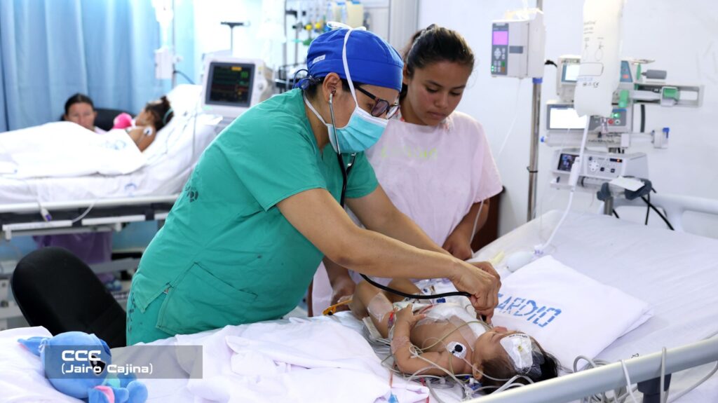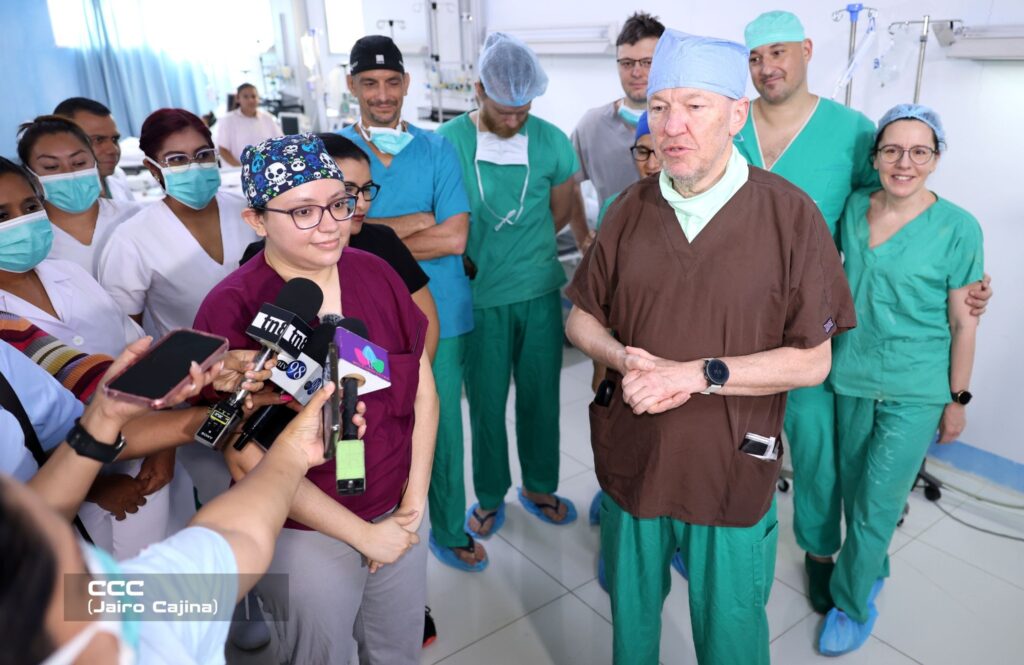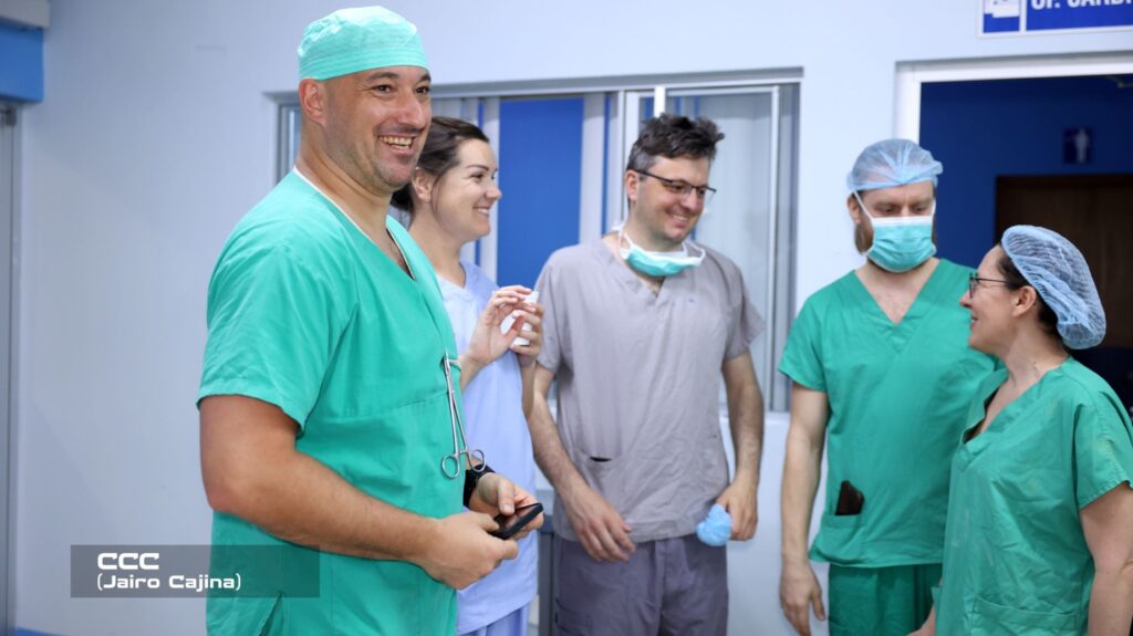 “Un equipo conformado por médicos, cirujanos, cardiovasculares, anestesiólogos, tanto nacionales como de extranjeros que vienen de la República Checa, de Praga. Diez niños de diferentes partes del país, vienen de Río San Juan, de Nueva Guinea, de El Ayote, son niños que tienen escasos recursos, niños con problemas cardíacos complejos, que la única oportunidad que tienen es haciendo estas jornadas y uniendo los esfuerzos con la brigada extranjera para darle solución a sus problemas cardíacos y de esta manera los padres gozan de felicidad al ver a sus hijos con un corazón funcionando normalmente y con una calidad de vida excelente”, indicó el cardiólogo pediatra dicho hospital, doctor Cristian Ramírez.