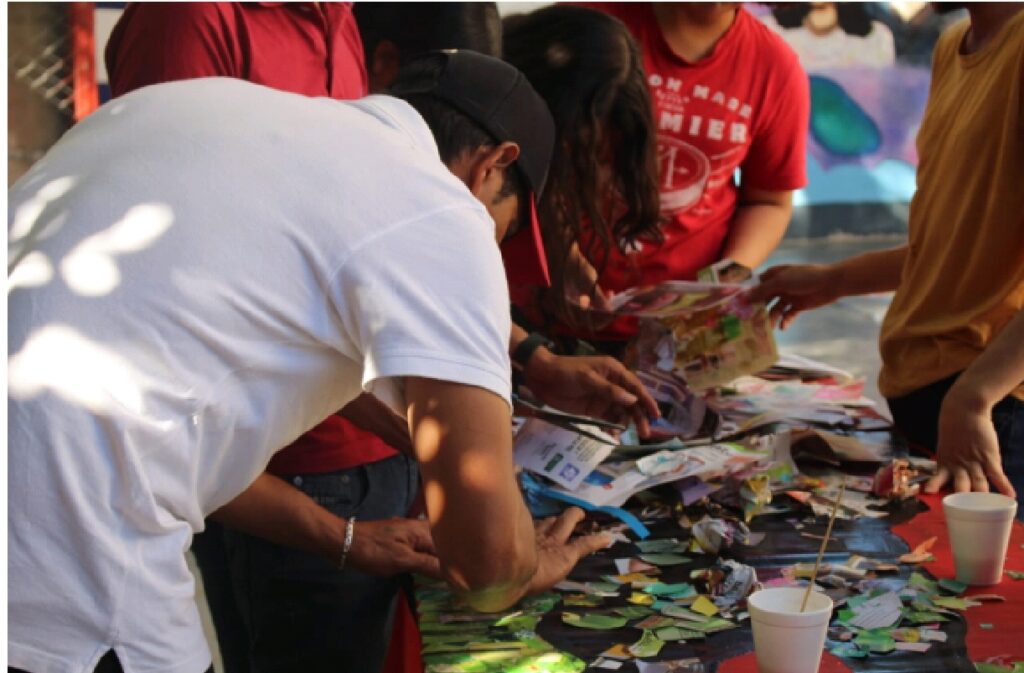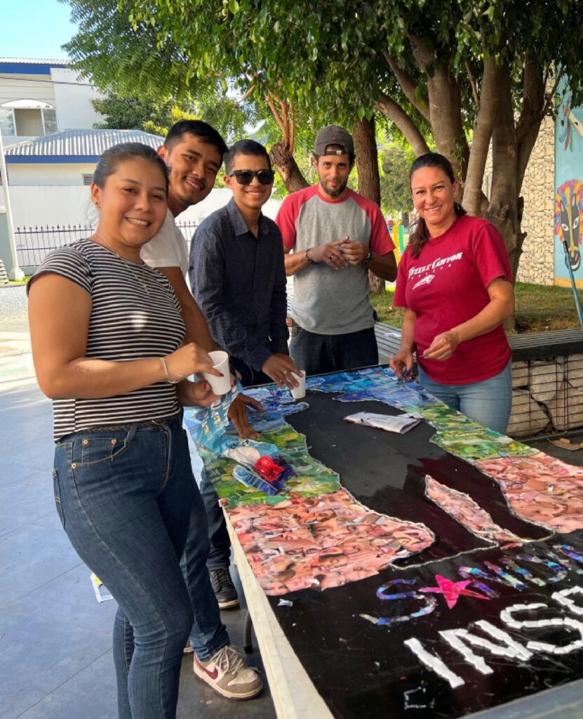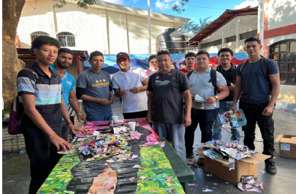 Durante la exposición, los jóvenes implementaron técnicas artísticas basadas en recortes de revistas, plásticos, discos y mecates, donde lograron plasmar un mensaje ambiental, como parte de los derechos de nuestra Madre Tierra y la Soberanía Nacional.