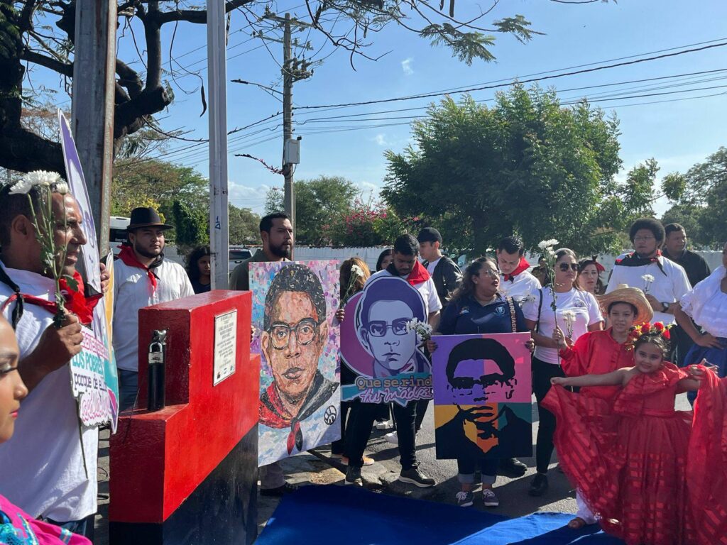 Los muchachos se congregaron en el monumento a su honor, ubicado en las inmediaciones del Cementerio Periférico de Managua, donde un 15 de enero de 1970 fue asesinado por la Guardia Nacional, junto a Roger Núñez Dávila y Mauricio Hernández Baldizón, con quienes se encontraba en una casa de seguridad.
