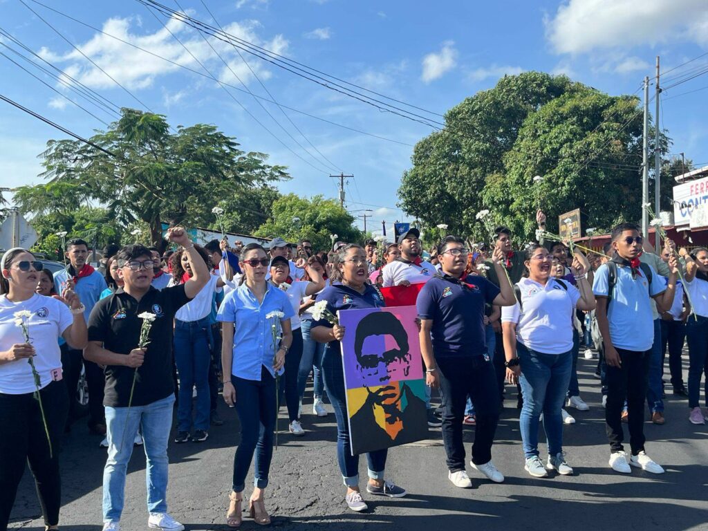 “Nos reunimos todos a entregarle una flor a él que no ha muerto, él está aquí en nuestro corazón y en todos los poemas que le dedica a Nicaragua y a nuestro Frente Sandinista de Liberación Nacional. Va a seguir en todos los estudiantes, en todos los jóvenes, jóvenes de secundaria, jóvenes de universidad, en toda nuestra Juventud Sandinista. El compromiso de nosotros los jóvenes es seguir avanzando, seguir luchando porque nuestra Nicaragua siga libre y en paz”, expresó la dirigente estudiantil.