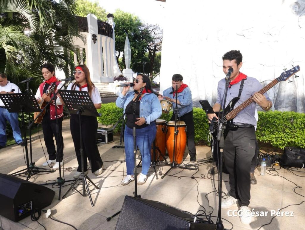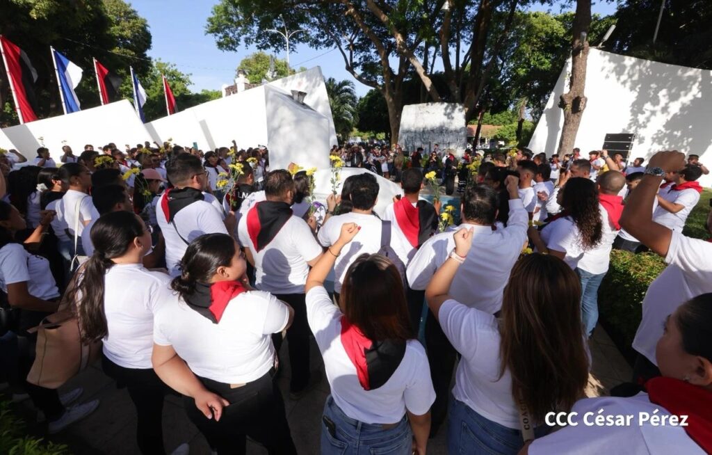 En la actividad, los participantes colocaron una ofrenda floral en honor al dirigente histórico, resaltando su papel como uno de los principales ideólogos de la lucha revolucionaria nicaragüense y reafirmando su compromiso de dar continuidad a su legado y avanzar en nuevas victorias.