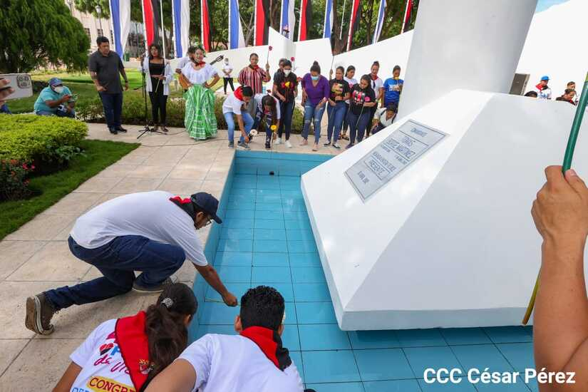 Los jóvenes sandinistas, rindieron homenaje al paso de la inmortalidad de uno de los miembros fundadores del FLSN Tomás Borge, con la entrega de flores en su mausoleo y una cantata, recordando a un héroe nacional nicaragüense.