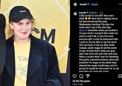 “¡Dios mío! Claramente soy hija de este hombre…”, escribió la actriz en su publicación. “El rostro, la sonrisa, me atrevería a decir que el mentón (oye, @perez, ¿recuerdas cuando acosaste a una niña de 13 años por dinero?) que me hizo querer acabar con todo, ahora es el regalo más precioso que podría haber recibido”