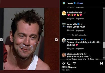 La fotografía registra un cálido momento en casa, con expresión de serenidad en el rostro de Bruce Willis. Los comentarios de los seguidores reflejaron el cariño del público hacia el actor: “¡Es genial verlo sonreír! Espero que esté bien”, escribió un usuario. Otro añadió: “¡La familia más preciosa! Me alegra tanto verlos juntos”.