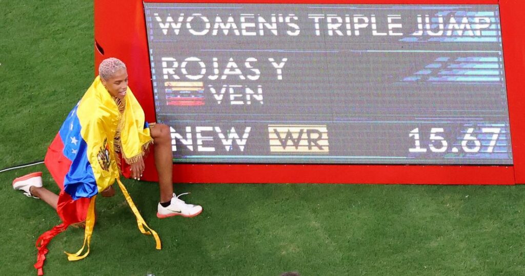 Rojas, además, posee el récord mundial en pista cubierta de 15,43 metros de longitud, un salto —alcanzado en febrero de 2021 en Madrid, España— con el que recibió el Guinness World Records en abril de este año, cuando la organización le entregó a Rojas el certificado. Un palmarés que sumó al obtenido en 2020, cuando fue condecorada como la “Mejor Atleta Femenina del Mundo” por World Athletics.