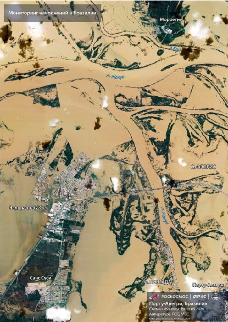 “Debido a las lluvias anormalmente intensas que empezaron a finales de abril, el estado de Rio Grande do Sul se inundó, lo que ha provocado deslizamientos de tierra, carreteras arrasadas y el derrumbe de puentes y presas en toda la región”, señaló Roscosmos.