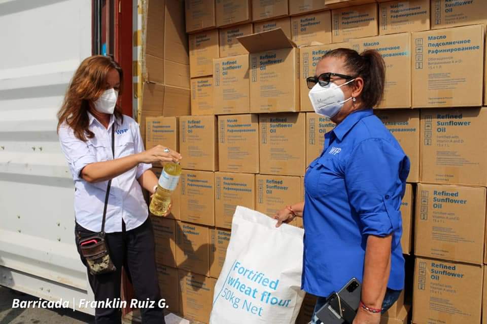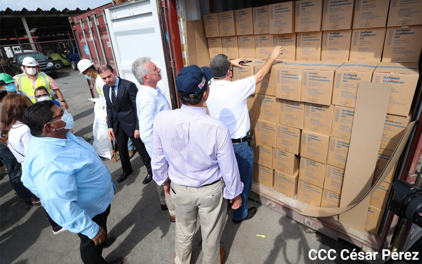 En Puerto Corinto fueron recibidas más de 800 toneladas en aceite de girasol y harina de trigo, una donación enviada por la Federación de Rusia a Nicaragua a través del Programa Mundial de Alimentos (PMA)