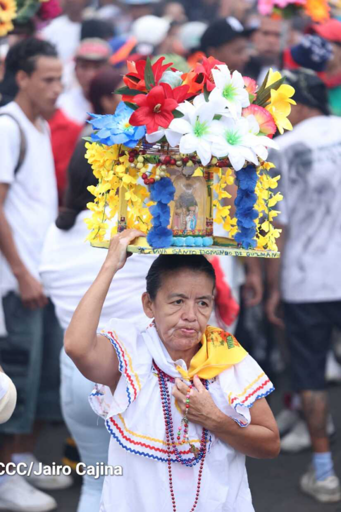 En un largo peregrinar por pistas y calles de Managua, que concluye en la Iglesia Santo Domingo, en el barrio 19 de Julio, donde la imagen milagrosa permanecerá durante 10 días, familias nicaragüenses celebraban a gritos esta tradición al compás de la insignia ¡Que viva Santo Domingo de Guzmán!