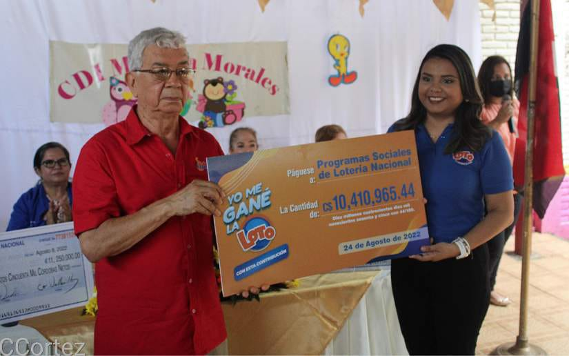 En el Centro de Desarrollo Infantil Melania Morales, en Managua, la Lotería Nacional realizó la octava entrega de utilidades al Instituto Nicaragüense de Deportes (IND) y al Ministerio de la Familia, Adolescencia y Niñez (MIFAN).