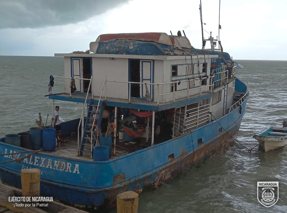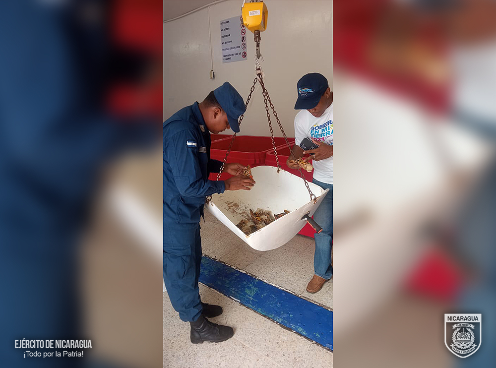 El Ejército de Nicaragua informó que ocupó langosta de la especie panulirus argus, la cual se encuentra en periodo de veda y 16,709.50 libras de caracol, los que eran trasladados a bordo de la embarcación de pesca Industrial “Lady Alexandra”violentando las regulaciones establecidas en las leyes del país.