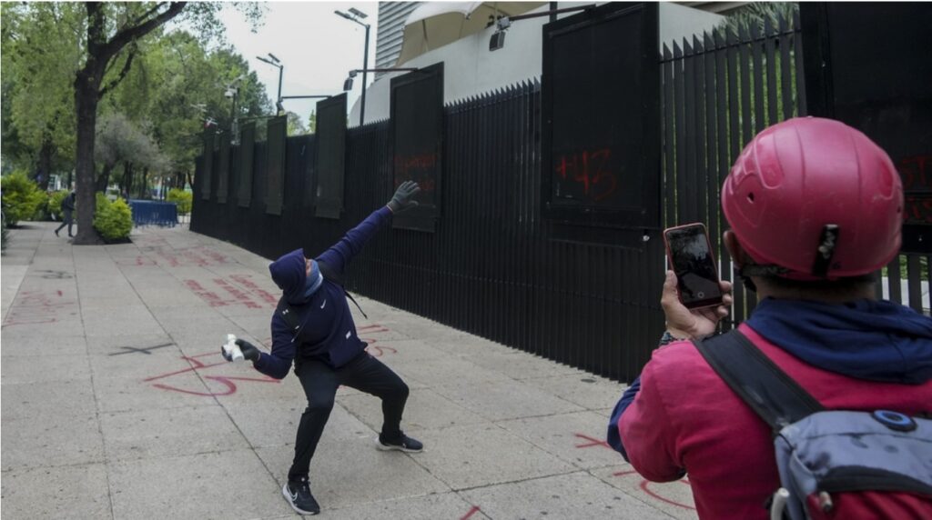 🇲🇽Manifestantes por Ayotzinapa lanzan petardos contra la sede del Senado mexicano