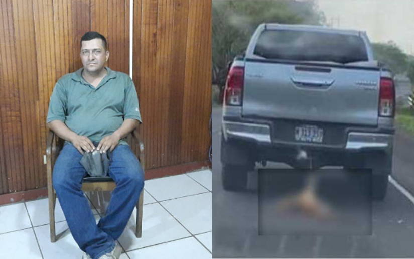 Samuel Antonio Miranda González, fue retenido por la Policía Nacional éste jueves 22 de abril en la ciudad de Juigalpa, Chontales, minutos después que el presunto autor del “delito de daños físicos y maltrato animal”, tras conocer que él detenido era quien conducía la camioneta Hilux, desde la parte trasera, y tocando el suelo jalaba a un canino, no sabe sin muerto, o todavía con vida.