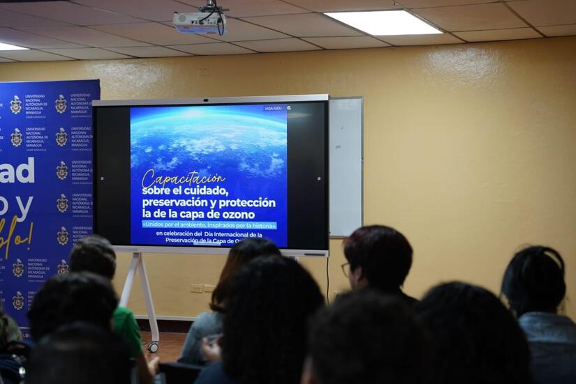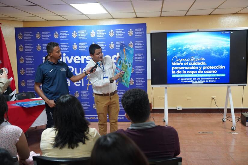 El Ministerio del Ambiente y de los Recursos Naturales (Marena), brindó este viernes una capacitación sobre la protección de la capa de ozono bajo el lema Unidos por el Ambiente, Inspirados por la Historia, donde participaron 60 jóvenes universitarios del Área de Conocimiento de Ciencias Jurídicas y Sociales de la Universidad Nacional Autónoma de Nicaragua, UNAN-Managua y miembros del Movimiento Ambientalista Guardabarranco.