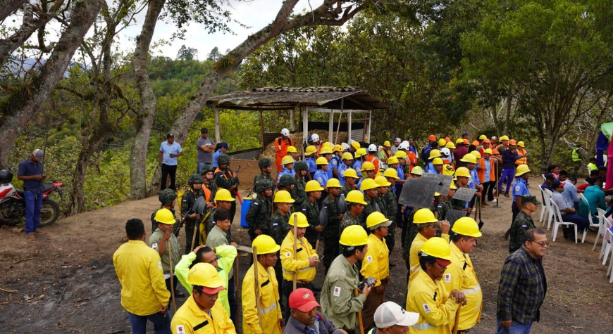 La presentación culminó con una demostración práctica de capacidad de respuesta ante incendios, en la que participaron más de 350 personas, entre autoridades municipales, protagonistas locales y representantes del Sistema de Producción, Consumo y Comercio, quienes integran la Comisión Nacional de Prevención de Incendios Forestales, Agropecuarios y de Malezas.