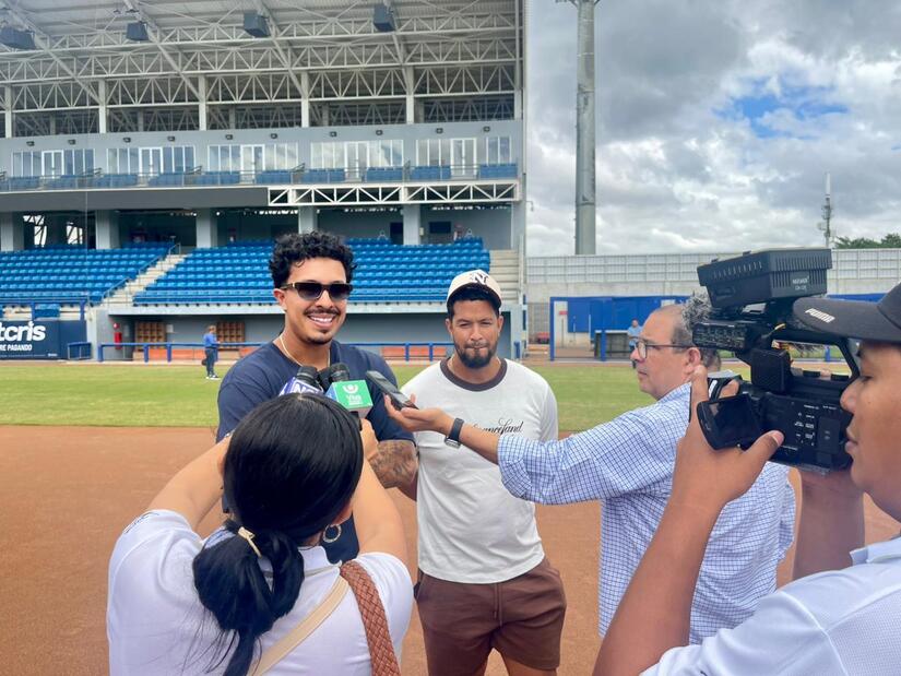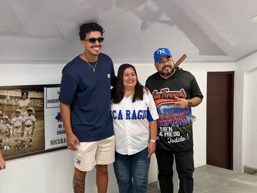 El pelotero nicaragüense Mark Vientos, jugador de los New York Mets, continuó este sábado con su visita a los nuevos estadios de béisbol construido por el Gobierno Sandinista.