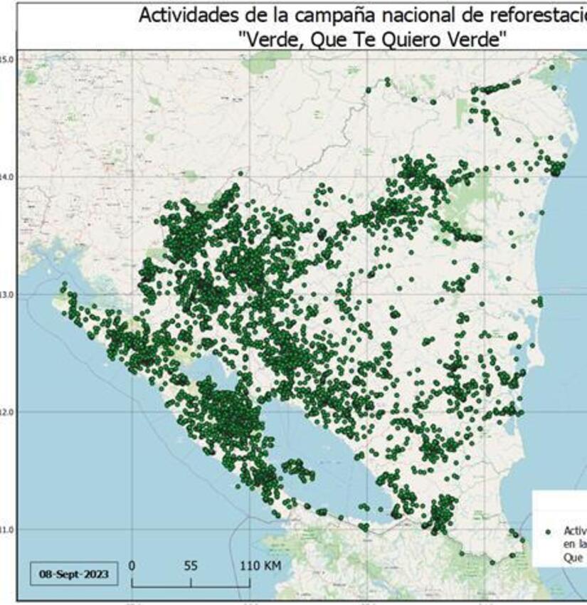 El gobierno de Nicaragua, a través de la Campaña de Reforestación Verde que te Quiero Verde 2023, sembró en la última semana, un millón 914 mil 573 árboles y plantas.