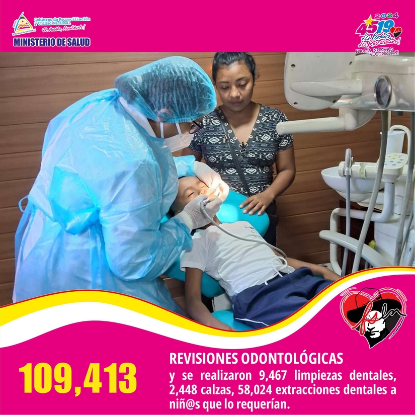 Más de 559 mil atenciones médicas realizó el Ministerio de Salud (MINSA) a través del Plan Nacional Escuelas Saludables, entre estas 109 mil 413 valoraciones dentales, 9 mil 467 limpiezas dentales, 2 mil 448 calzas, 58 mil 24 extracciones, 80 mil 149 demostraciones de la buena técnica del cepillado dental y 3, 441,150 enjuagues de flúor, informó el Ejecutivo a través de una nota de prensa, este miércoles.