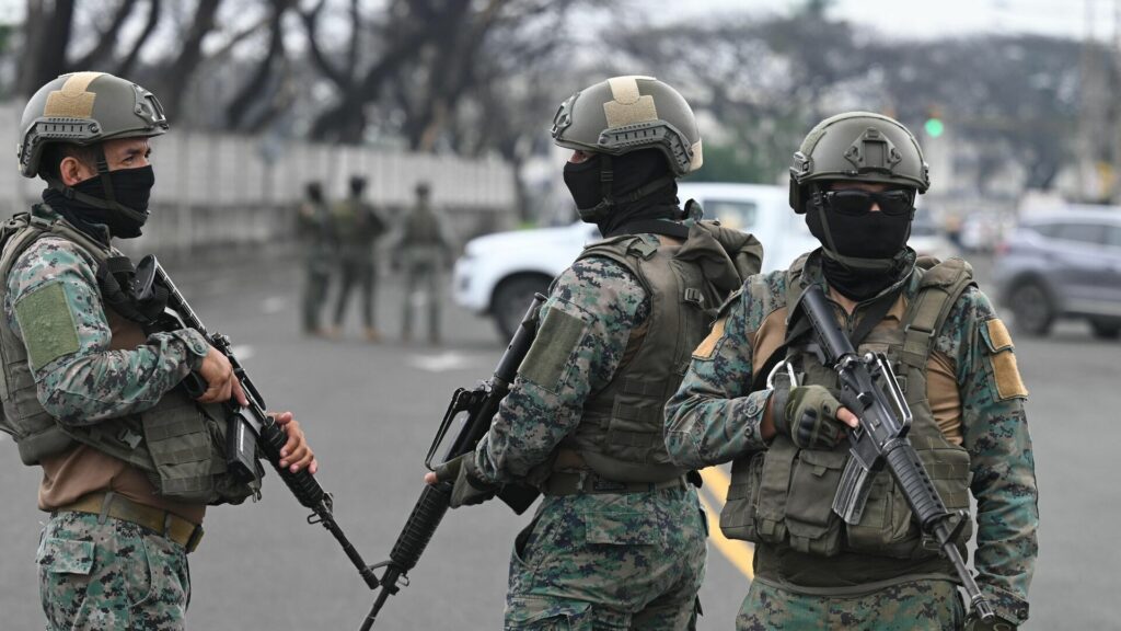 Ante la ola de violencia, Noboa declaró el 9 de enero el estado de excepción por 60 días y “conflicto armado interno” en el país. El presidente también ordenó a las Fuerzas Armadas “ejecutar operaciones militares” contra 22 grupos criminales, que pasaron a ser concebidos como un “objetivo militar” para el Ejército.