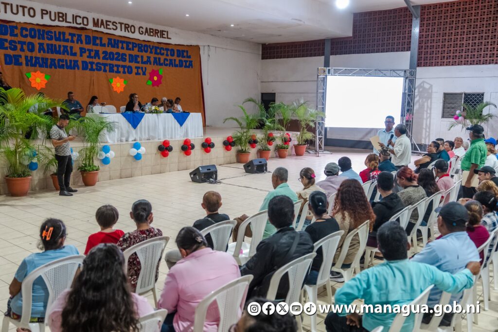 Para el 2026, la comuna de Managua tiene presupuestado más de mil millones de córdobas a ser invertidos en el Distrito IV, en 53 obras, así expuso la Alcaldesa Reyna Rueda, durante el cabildo abierto de este miércoles, donde se presentó el Anteproyecto de Presupuesto General de Ingresos y Egresos y el Plan de Inversión Anual 2026.