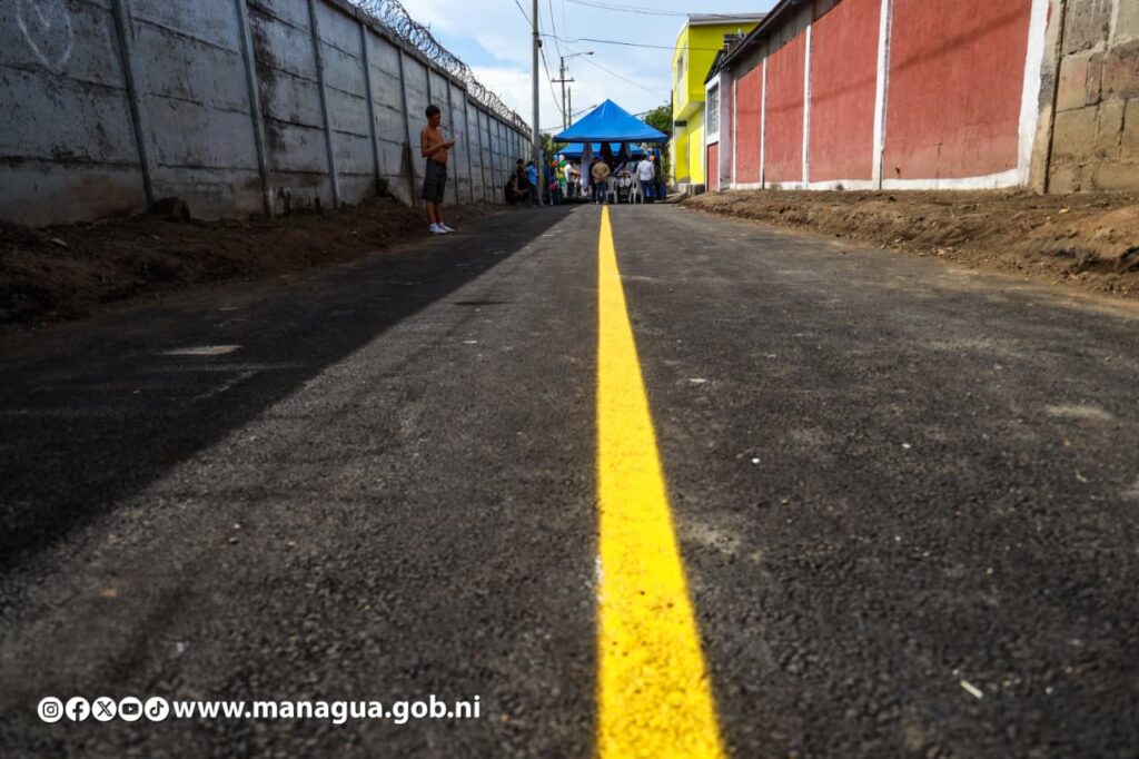 La Alcaldía de Managua entregó a las familias del Barrio Alexis Argüello ubicado en el Distrito VI, 5.20 cuadras revestidas de asfalto, beneficia directamente a 600 pobladores, manifestó este miércoles, el Vicealcalde Enrique Armas.