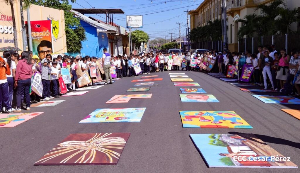 Estudiantes de las Escuelas de Arte de Masaya, realizaron este miércoles la exposición de cuadros Tapiz de Colores y Flores, en la que honraron la memoria de los Héroes y Mártires de Los Sabogales, en el 48 aniversario de su asesinato de manos de la guardia somocista.