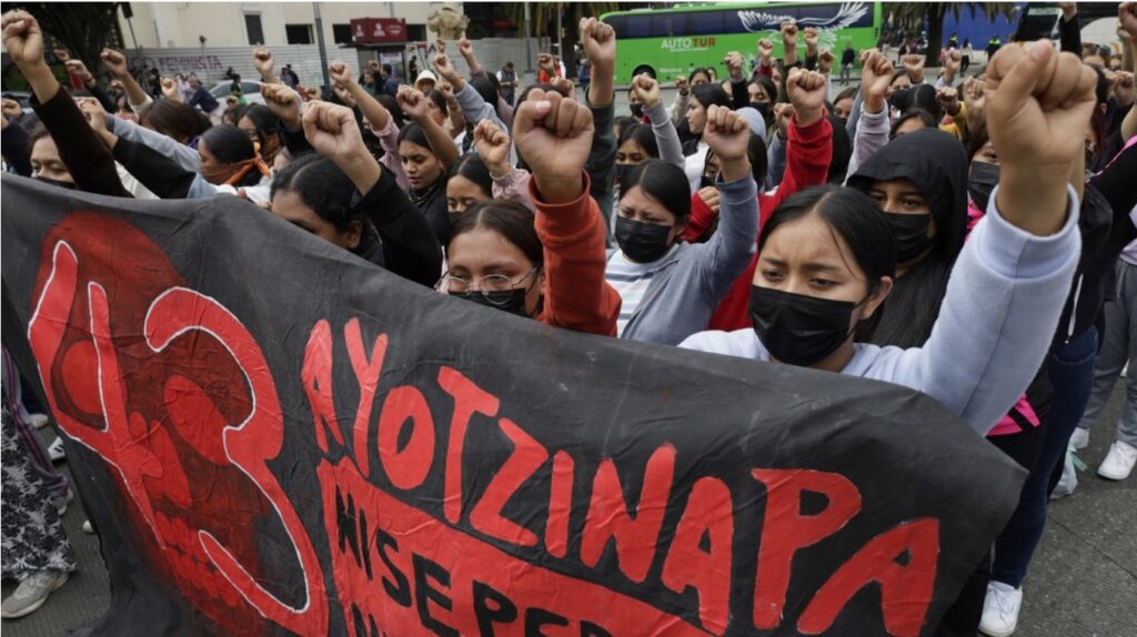 La tarde de este jueves, cientos de personas han salido a marchar en Ciudad de México para conmemorar el décimo aniversario de la desaparición forzada de 43 estudiantes de la Escuela Normal Isidro Burgos de Ayotzinapa, en el estado de Guerrero. pic.twitter.com/SSEf6228px