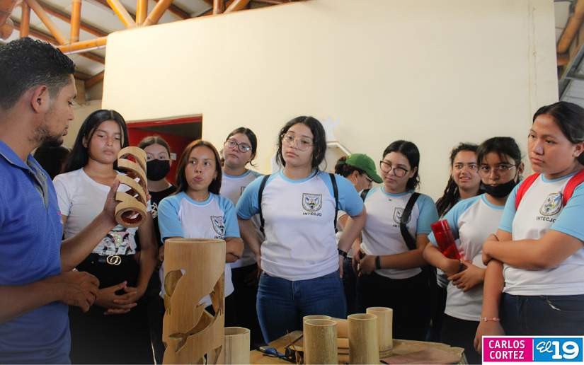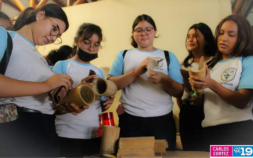 Más de 20 estudiantes del Instituto Técnico José Dolores Estrada y protagonistas que son atendidos por el Ministerio de Economía Familiar Cooperativa y Asociativa (MEFCCA), participaron este sábado del taller práctico de elaboración de alcancía de bambú desarrollado en el Parque Nacional de Ferias, en Managua.