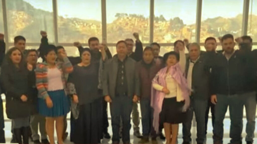 En ese sentido, llamó a las organizaciones sociales a respaldar la democracia boliviana. “¡Muera el golpismo!”, exclamaron al final de su mensaje.