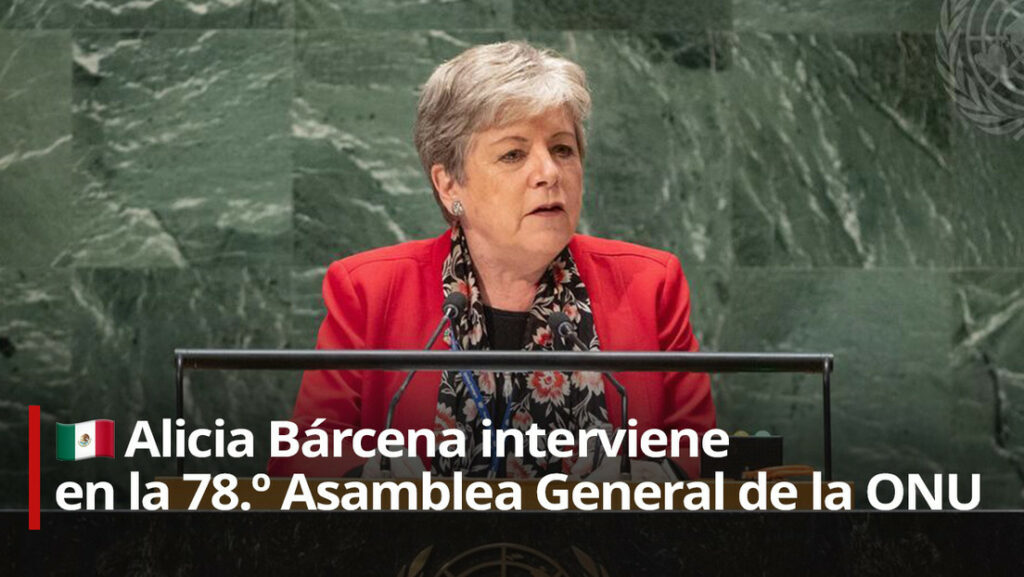 (RT).- La canciller de México, Alicia Bárcena, intervinó este sábado en el Debate General de Alto Nivel del 78 Período Ordinario de Sesiones de Naciones Unidas, que se celebra en Nueva York desde el pasado 19 de septiembre.