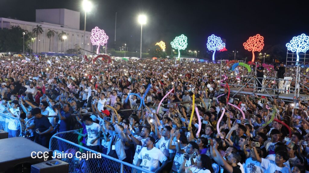 Miles de cristianos evangélicos de todas partes del país se reunieron este viernes en la Plaza la Fe de Managua, celebrando el 22 aniversario de la Iglesia Ríos de Agua Viva y la paz que hay en Nicaragua glorificando a Dios.