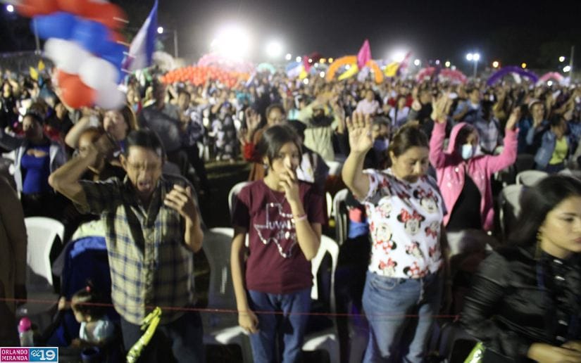 Familias evangélicas le dieron gracias a Dios por todos sus favores en el 2023, en la gran Vigilia de Fin de Año de la Iglesia Ríos de Agua Viva, en Managua este 31 de diciembre.