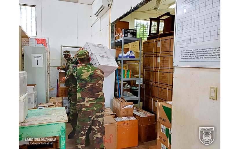 El Ejército de Nicaragua, el 5 de diciembre de 2023 a través del Destacamento Militar Sur, en coordinación con el Sistema Local de Atención Integral en Salud, realizó el descargue de 675 cajas conteniendo material de reposición periódica y reactivos de laboratorio, en el Hospital “Dr. Luis Felipe Moncada” del municipio de San Carlos, Departamento de Río San Juan.