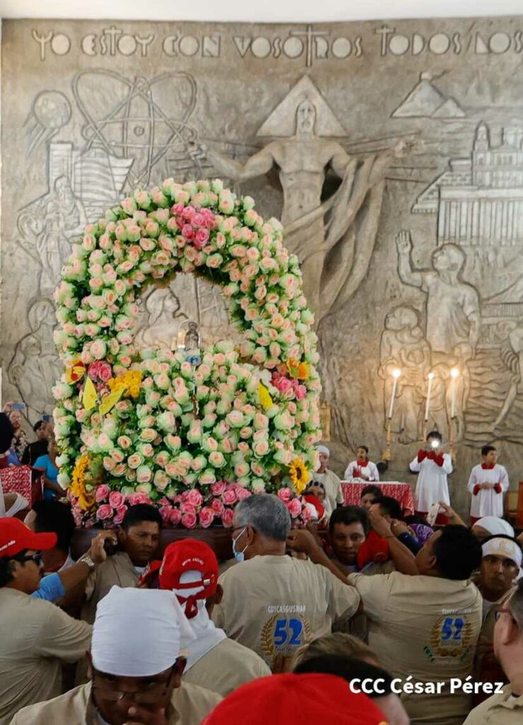Para dar inicio esta celebración religiosa, los fieles devotos llegaron a la iglesia Santo Domingo del barrio 19 de Julio, en las inmediaciones del mercado Oriental, para participar de una misa oficiada por el padre Orlando Aguilar Castrillo y posteriormente los cargadores tradicionales salieron de la iglesia para recorrer la capital y enrumbarse nuevamente hacia su templo ubicado en Las Sierritas.