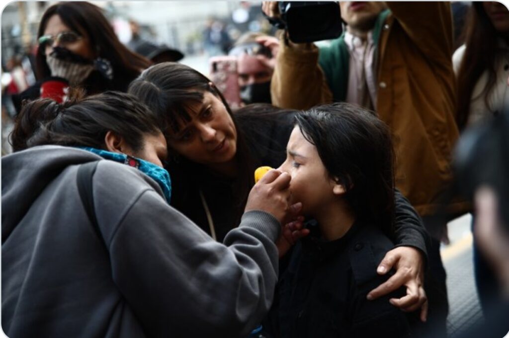 Según se puede ver en las imágenes, tras sentir el gas en sus ojos, una pequeña lloraba y se veía muy asustada, mientras varios manifestantes trataban de asistirla.