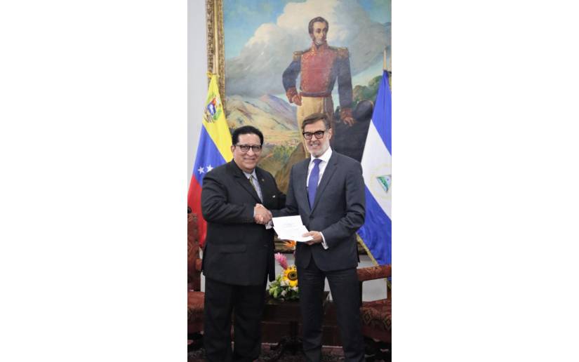 Félix Plasencia, Ministro de Relaciones Exteriores de la República Bolivariana de Venezuela, recibió las Copias de Estilo del Compañero Orlando Gómez Zamora, que lo acreditan como Embajador de Nicaragua ante Venezuela.