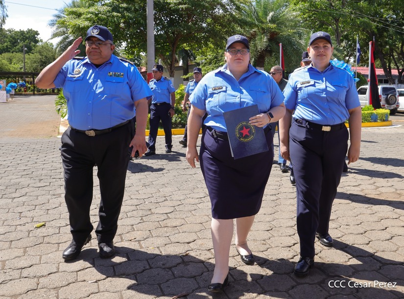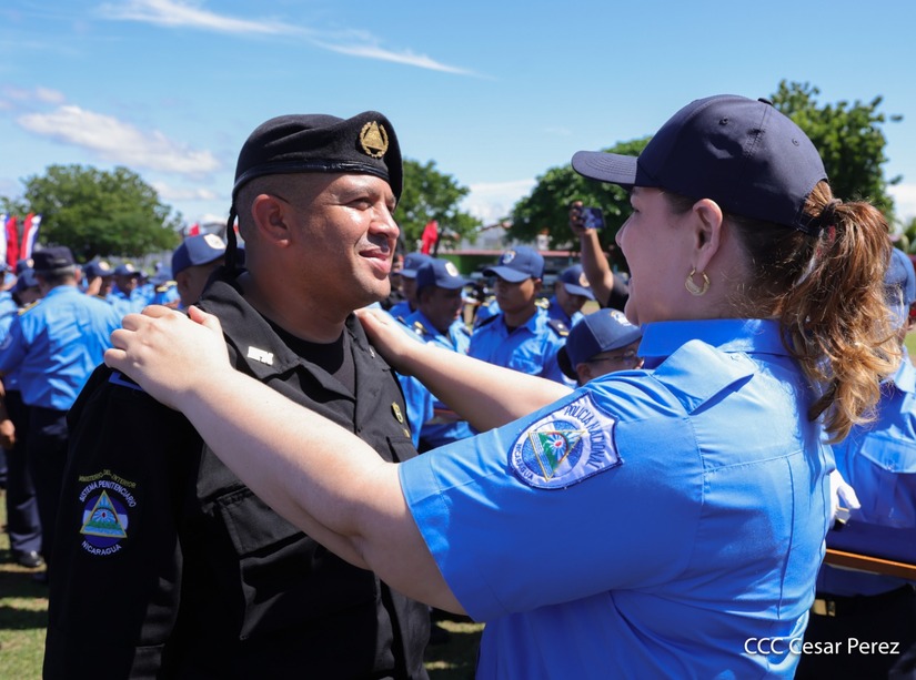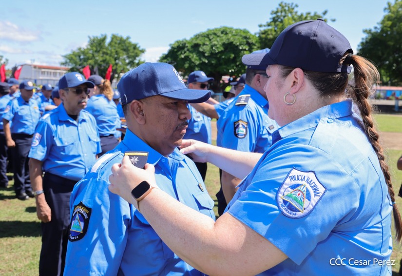 “Prometen ante Dios, ante la patria, ante el pueblo, ante nuestros héroes y mártires, y a las familias nicaragüenses respetar la Constitución, las leyes, los derechos y las libertades del pueblo, y cumplir realmente las misiones encomendadas bajo los principios fundamentales del Ministerio del Interior para garantizar la seguridad y la paz de nuestra nación”, describió Coronel en relación a la promesa de ley.