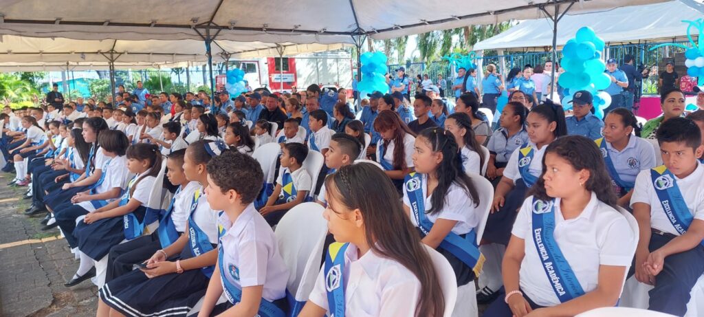 “Niñas y niños, siéntanse orgullosos de sus padres, del trabajo que ellos realizan, del sacrificio que ellos hacen porque el valor más grande, la riqueza más grande que tenemos es la paz y por ello sus papás y mamás trabajan en nuestra Policía Nacional en nuestra Dirección de Operaciones Especiales. Les insto a seguir adelante, seguir estudiando, a ser grandes como Rubén Darío, a cumplir los sueños de nuestros héroes y mártires, sepan aprovechar las oportunidades de educación que nuestro Buen Gobierno impulsa para todos los niños de Nicaragua”, refirió el jefe de la DOEP, comisionado general Justo Pastor Urbina.