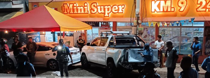Testigos aseguran que el motorizado iba a alta velocidad y perdió el control en una curva, derrapando sobre la vía e impactando contra la camioneta color blanco, que estaba estacionada en las afueras del minisúper y producto del encontronazo la camioneta también chocó contra otro carro que ahí se encontraba.
