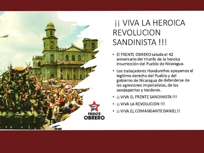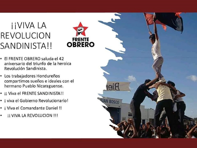 Movimiento Obrero de Honduras saluda el 42 Aniversario de la Revolución Popular Sandinista
