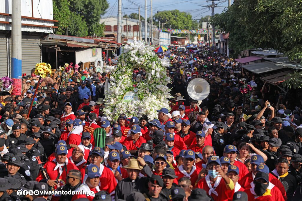 El patrono de los managuas arribó a su morada de la capital pasada las 5 de la tarde, al son de música filarmónica, bailes y pólvora. Santo Domingo de Guzmán llegó tras una jornada de 12 horas, desde que inició la peregrinación en Las Sierritas, junto a miles de promesantes, devotos, emprendedores y familias.