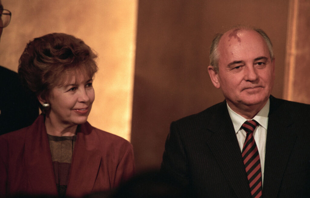 En cuanto a su esposa, Raísa Gorbachova, fue proclamada en 1987 como “mujer del año” por la revista británica Woman’s Own, mientras que la fundación Together for Peace la galardonó con el premio Mujer por la Paz. En 1991 recibió el premio Lady of the Year. Su personalidad y estilo dinámico atrajeron el interés y la atención de los observadores y medios occidentales. En el papel de mensajera de la paz que apoyaba la política innovadora de su marido, destacó por sus generosas contribuciones para la atención de los niños enfermos de leucemia. Durante muchos años patrocinó el Hospital Central Infantil de Moscú así como la Asociación Internacional de Hematólogos del Mundo para los Niños, ayudando, asimismo, a introducir técnicas modernas para el tratamiento de la leucemia infantil.