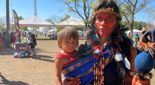 Este año, el tema es “Biomas Mujeres en Defensa de la Biodiversidad a través de las raíces ancestrales” . El encuentro comenzó en el Centro Cultural Iberoamericano, antes Funarte, desde donde el grupo inició la marcha hacia la Explanada dos Ministerios, en donde llegaron frente al Congreso Nacional.
