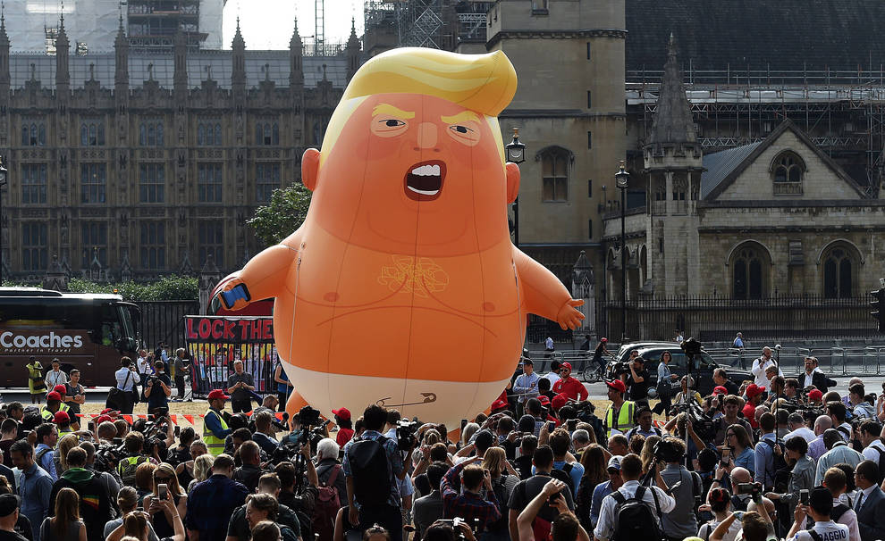 Este inmenso globo, que representa a un bebé rubio furioso vestido con un simple pañal y llevando un teléfono móvil en la mano, se había convertido en símbolo de las protestas contra Trump durante la visita de Estado que hizo en junio de 2019 a Londres.