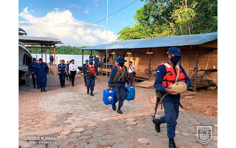 El Ejército de Nicaragua el 4 y 5 de diciembre de 2023, en cumplimiento al Plan de Protección de las Fronteras Estatales y Estrategia “Muro de Contención”, durante patrulla naval a 500 metros al sur del muelle de la comunidad de Tasbapounie, Región Autónoma de la Costa Caribe Sur, se realizó el hallazgo de una embarcación tipo panga sin nombre, conteniendo en su interior 6 recipientes de combustible y 2 bultos redondos, los cuales al realizar prueba de campo dio positivo a marihuana con un peso de 4,152 gramos.